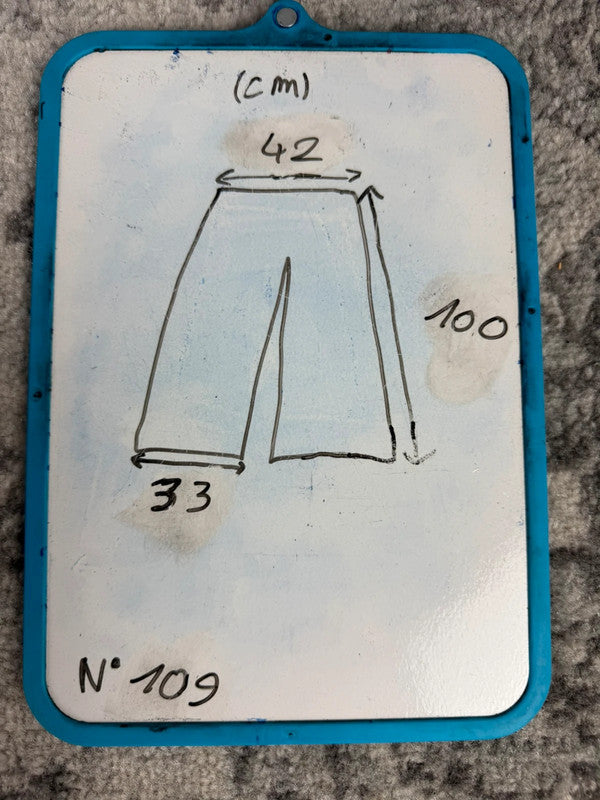 Chaque pantalon est entièrement retravaillé à la main, dans une logique de production responsable, sans surstock ni fabrication industrielle.