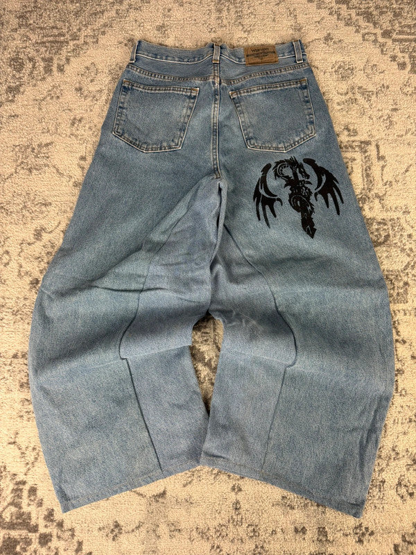 Pantalon baggy jean large skater Japanese balloon streetwear JNCO y2k vintage hip-hop M n•110