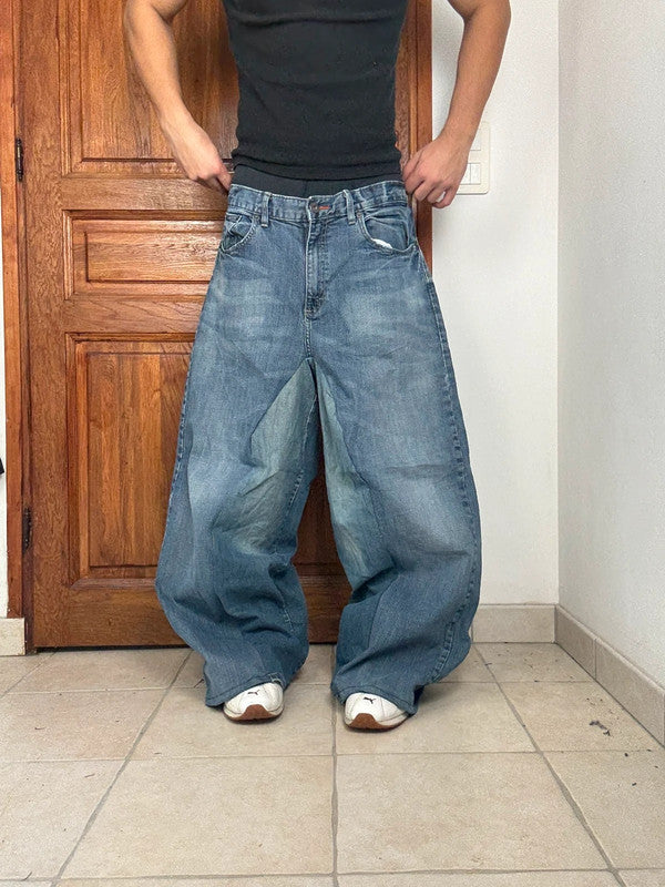 Pantalon baggy jean large skater Japanese balloon streetwear JNCO y2k vintage hip-hop XL n•239