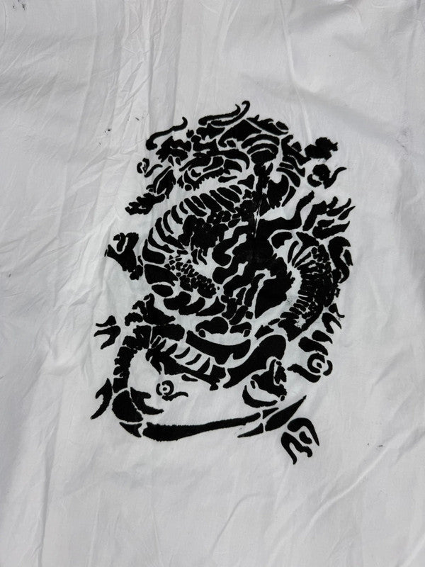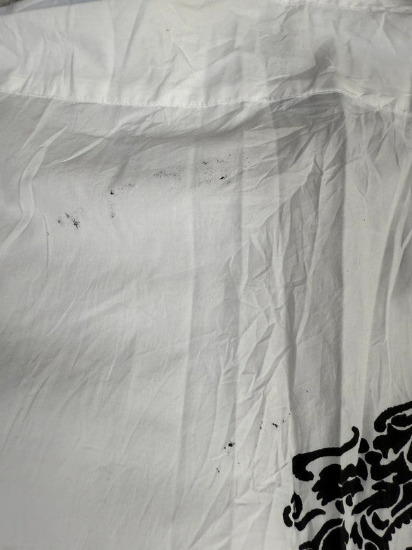Chemise blanche manche courte design streetwear y2k hip-hop fait main taille L n•505