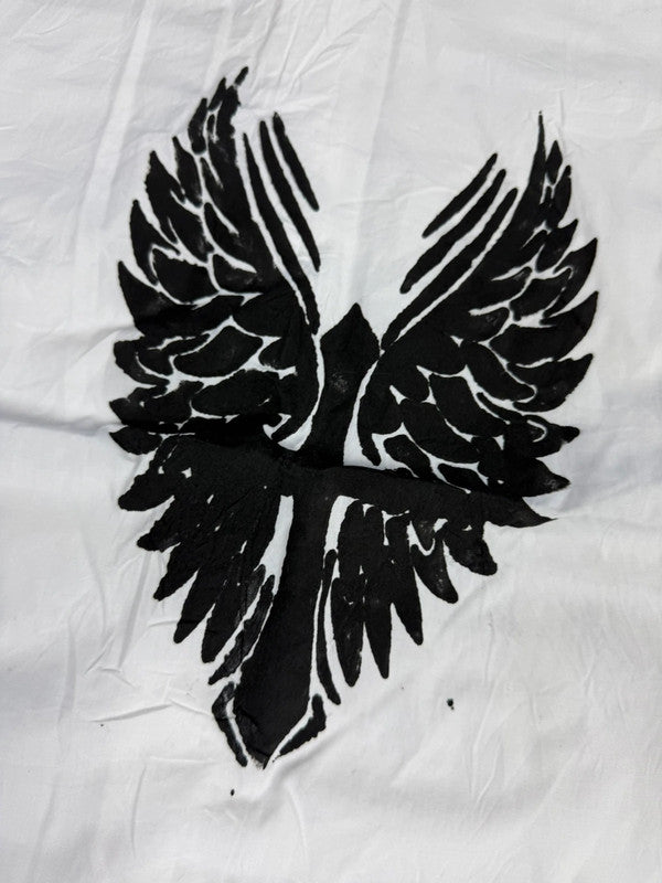 Chemise blanche manche courte design streetwear y2k hip-hop fait main taille L n•506