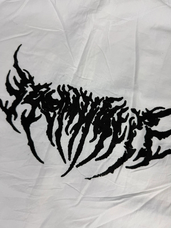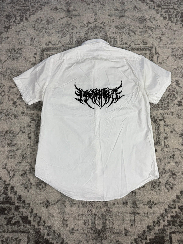 Chemise blanche manche courte design streetwear y2k hip-hop fait main taille M n•504