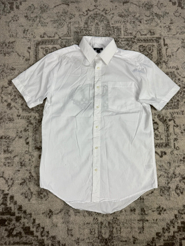 Chemise blanche manche courte design streetwear y2k hip-hop fait main taille S n•508