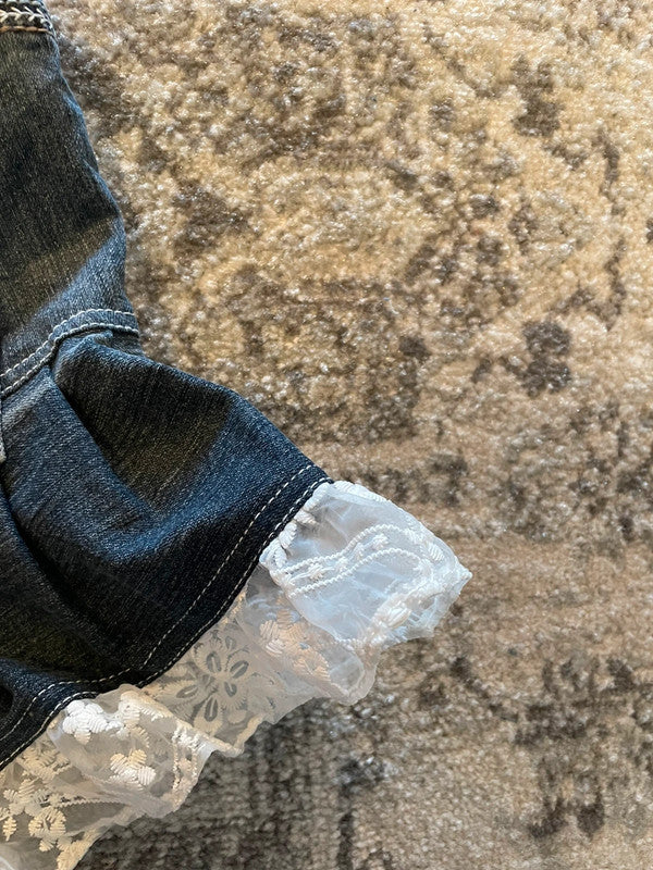 Jupe dentelle y2k custom handmade grunge goth emo skirt jean taille S n•330