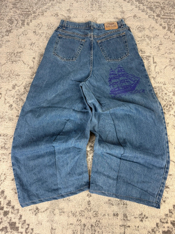 Pantalon baggy jean large skater Japanese balloon streetwear JNCO y2k vintage hip-hop M n•142