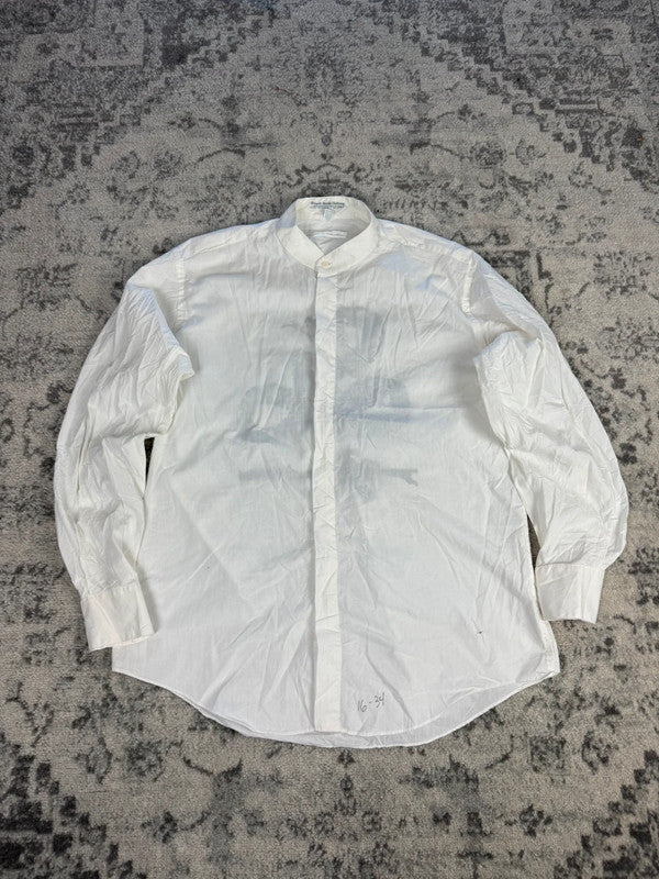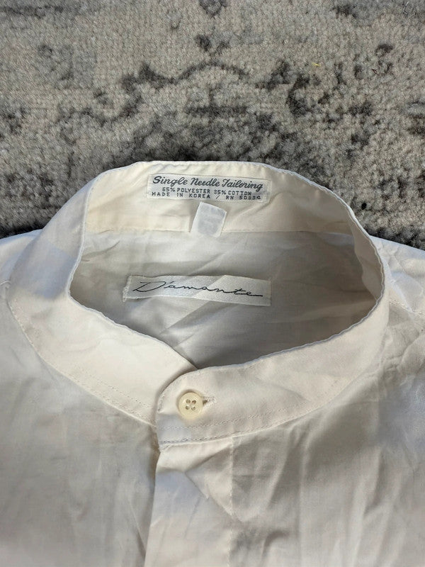 Chemise blanche col mao design streetwear y2k hip-hop fait main taille L n•490