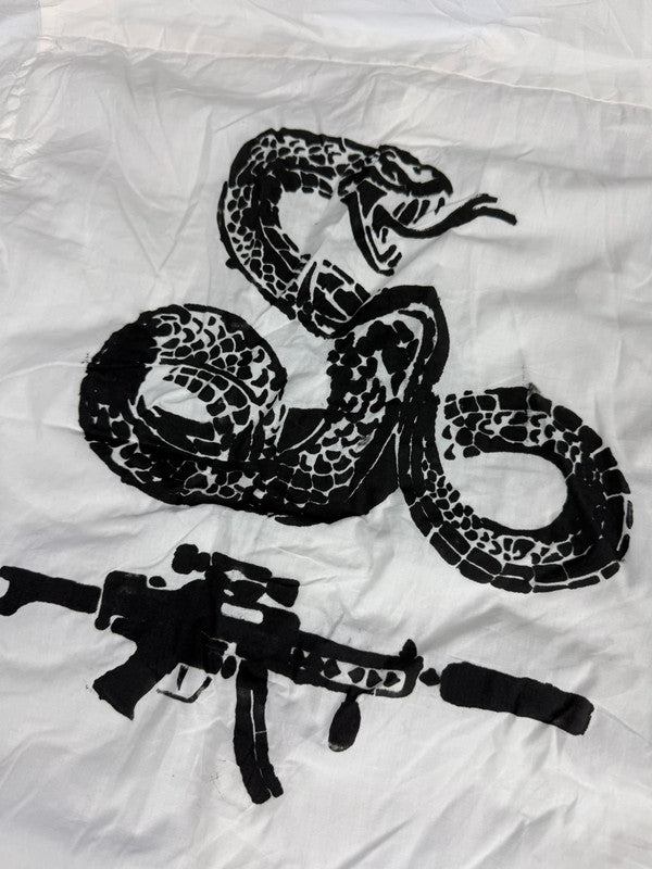 Chemise blanche col mao design streetwear y2k hip-hop fait main taille L♻️