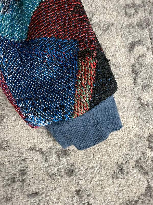 Manteau en tapisserie design unique vintage fait main upcyclé retravaillé tissé taille L ♻️