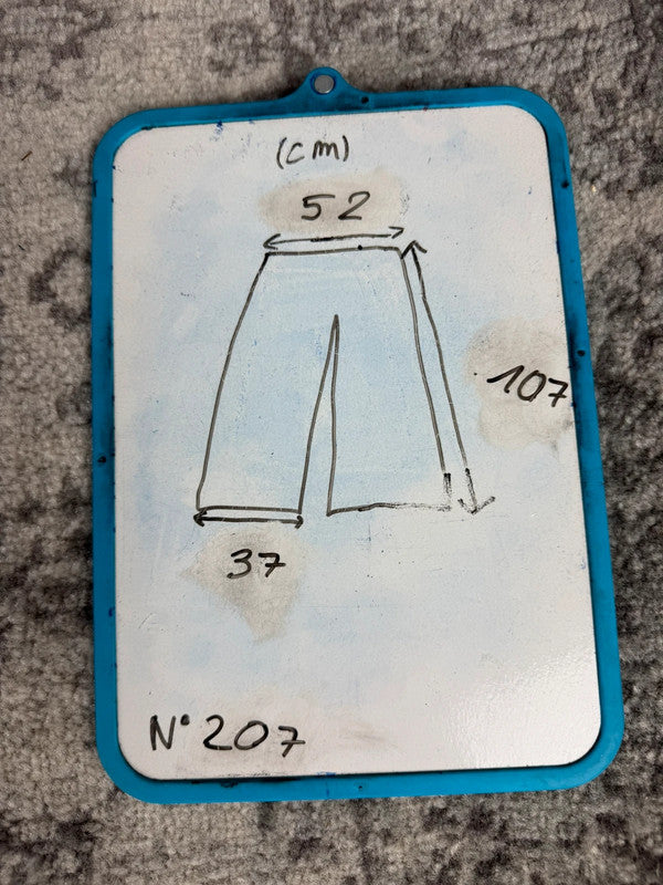 Ce baggy upcyclé est conçu à partir de jeans vintage sélectionnés, puis retravaillés à la main pour offrir une coupe extra large, structurée et authentique.