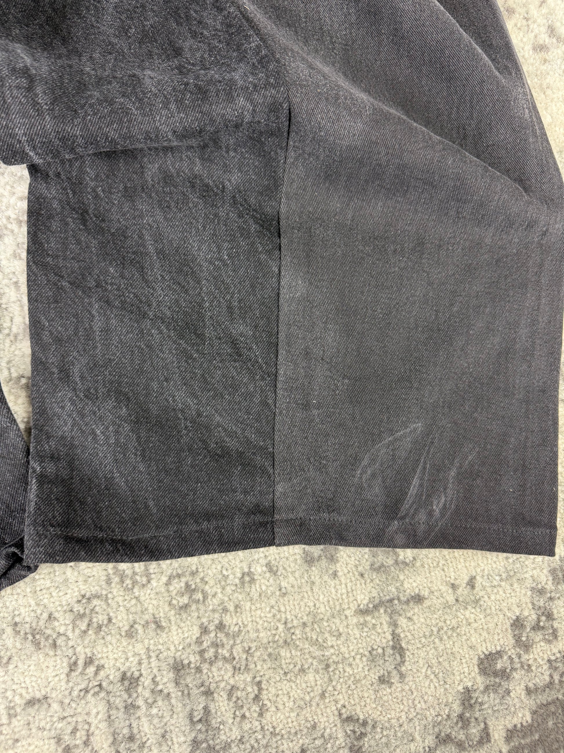 La coupe ample et longue crée un tombé lourd et fluide, parfait pour une silhouette streetwear Y2K, alternative ou underground.