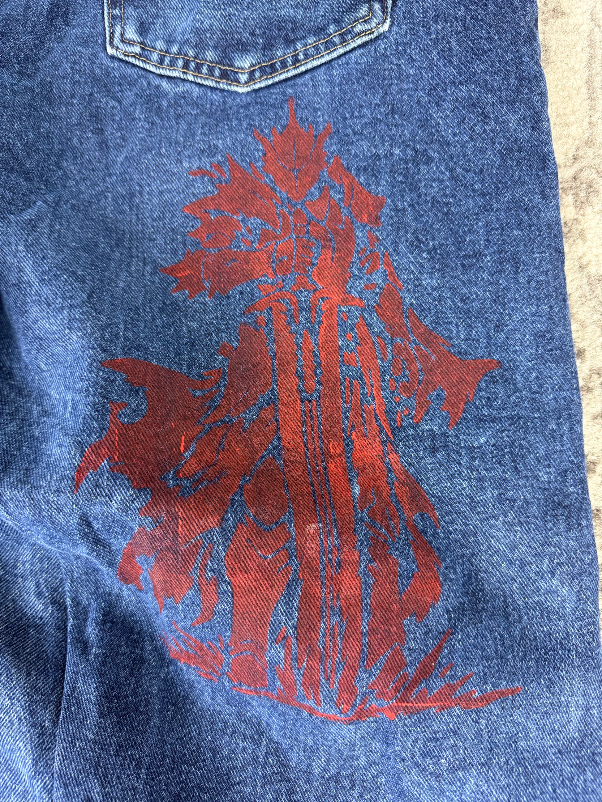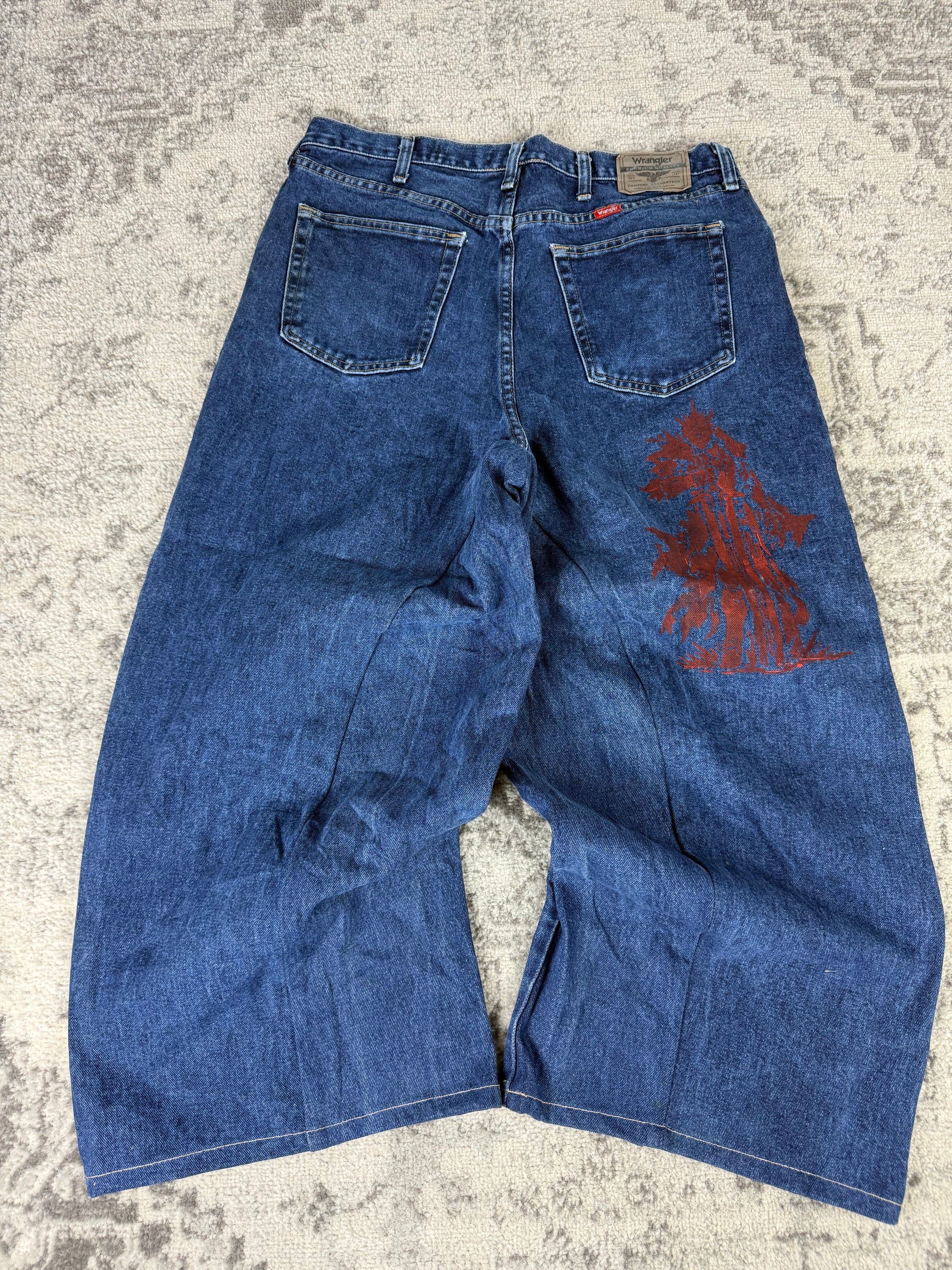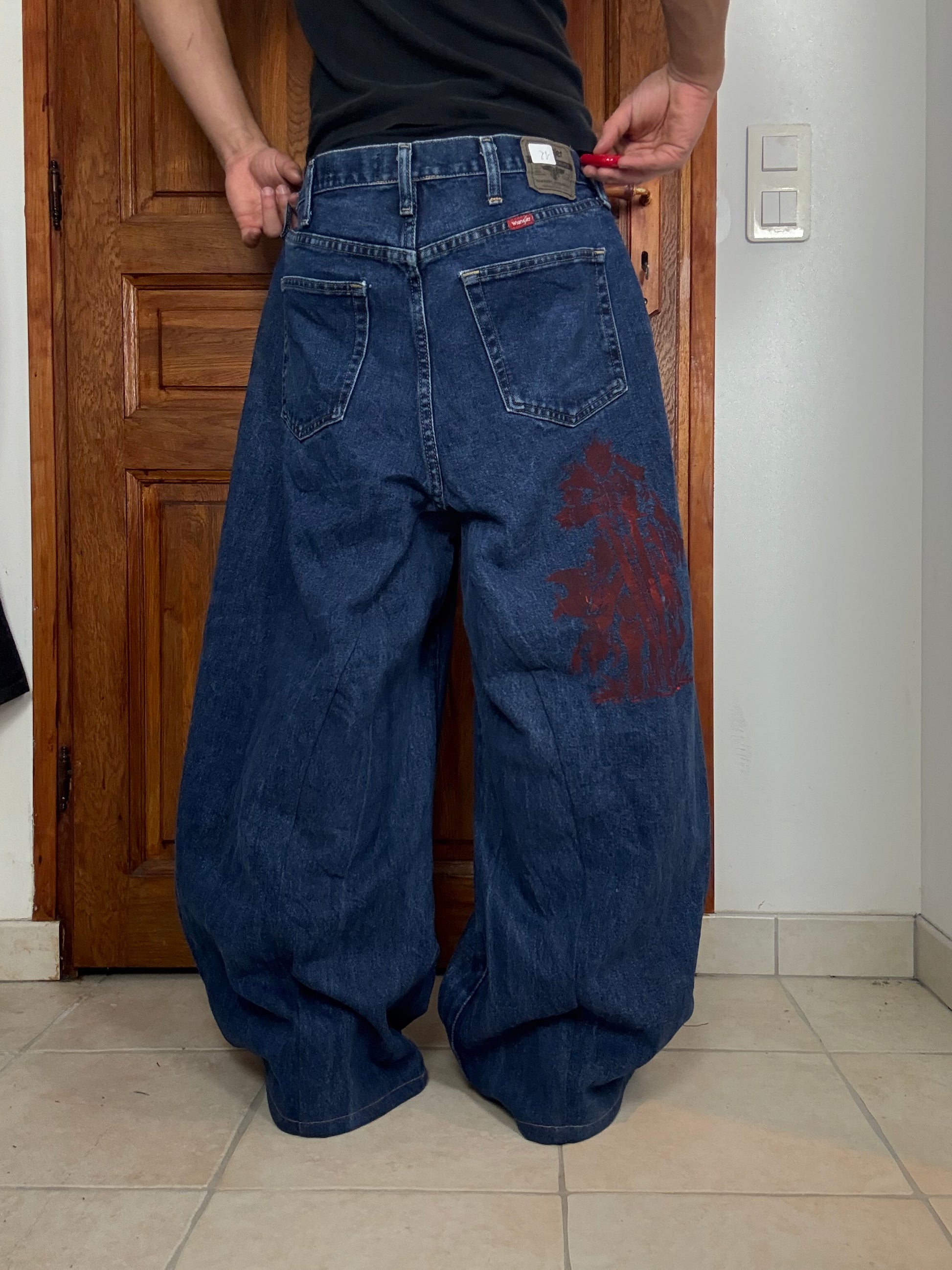 Pantalon baggy en denim upcyclé large style skater streetwear y2k hip-hop 90’s - Pièce unique L n•12