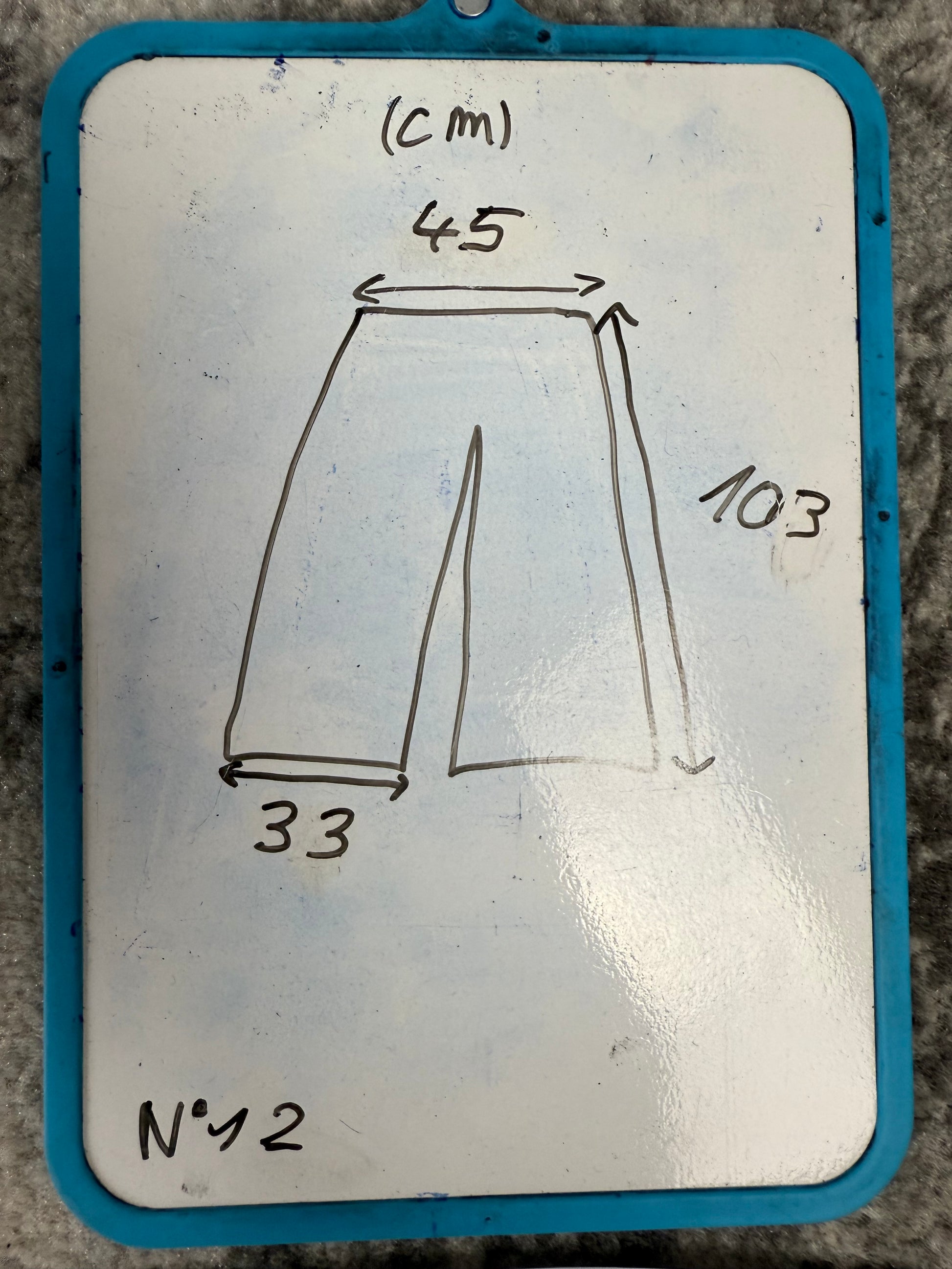 Chaque pantalon est entièrement retravaillé à la main, dans une logique de production responsable, sans surstock ni fabrication industrielle.