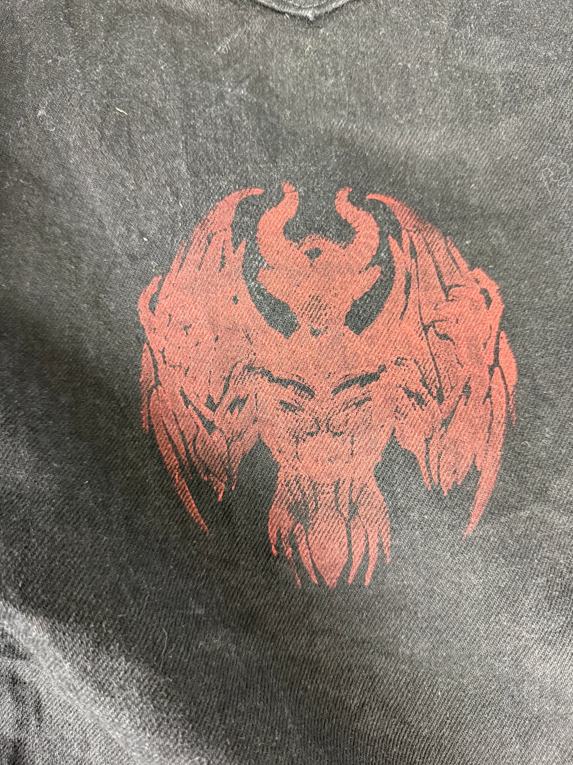 La coupe ample et longue crée un tombé lourd et fluide, parfait pour une silhouette streetwear Y2K, alternative ou underground.