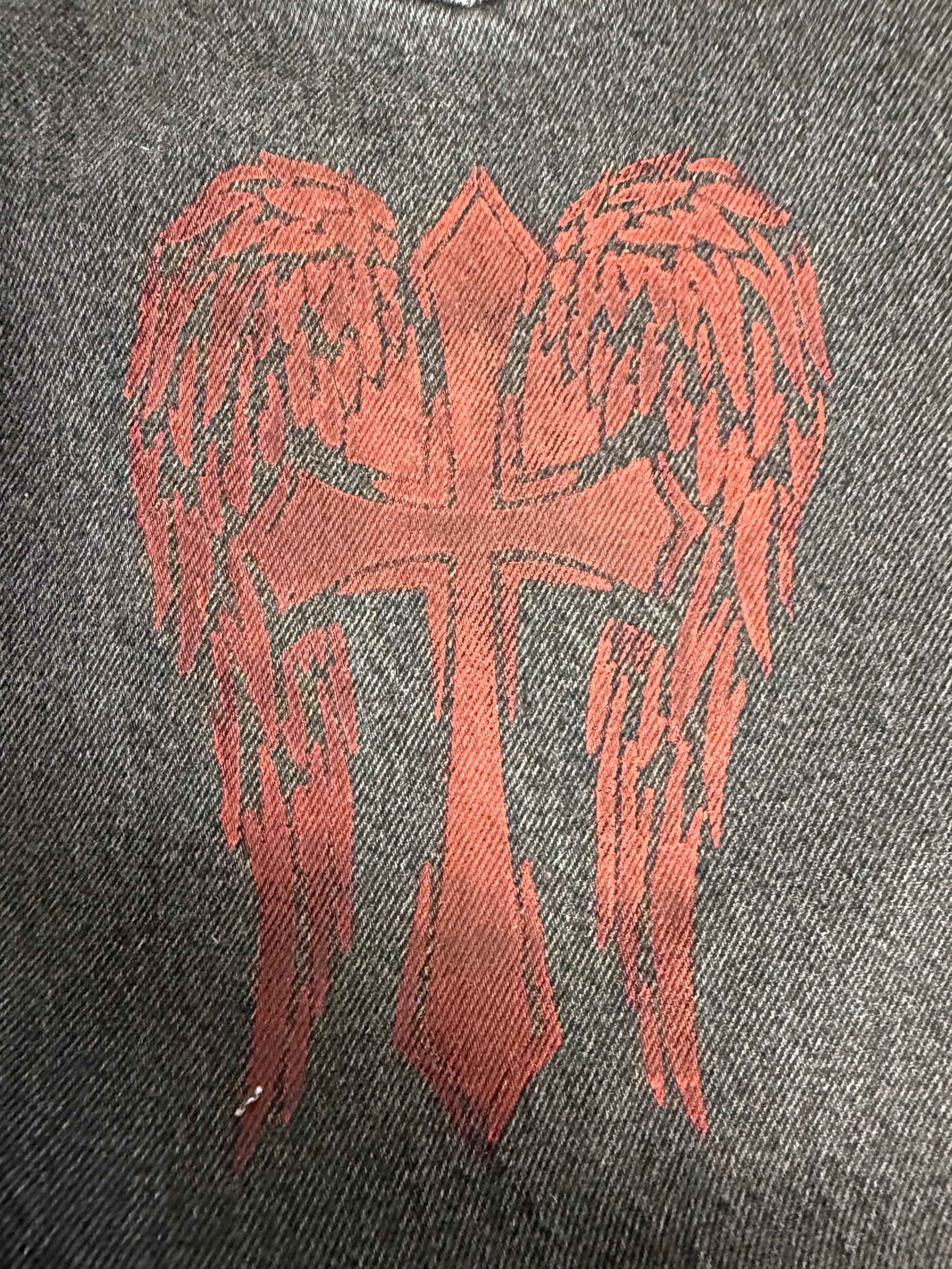 La coupe ample et longue crée un tombé lourd et fluide, parfait pour une silhouette streetwear Y2K, alternative ou underground.