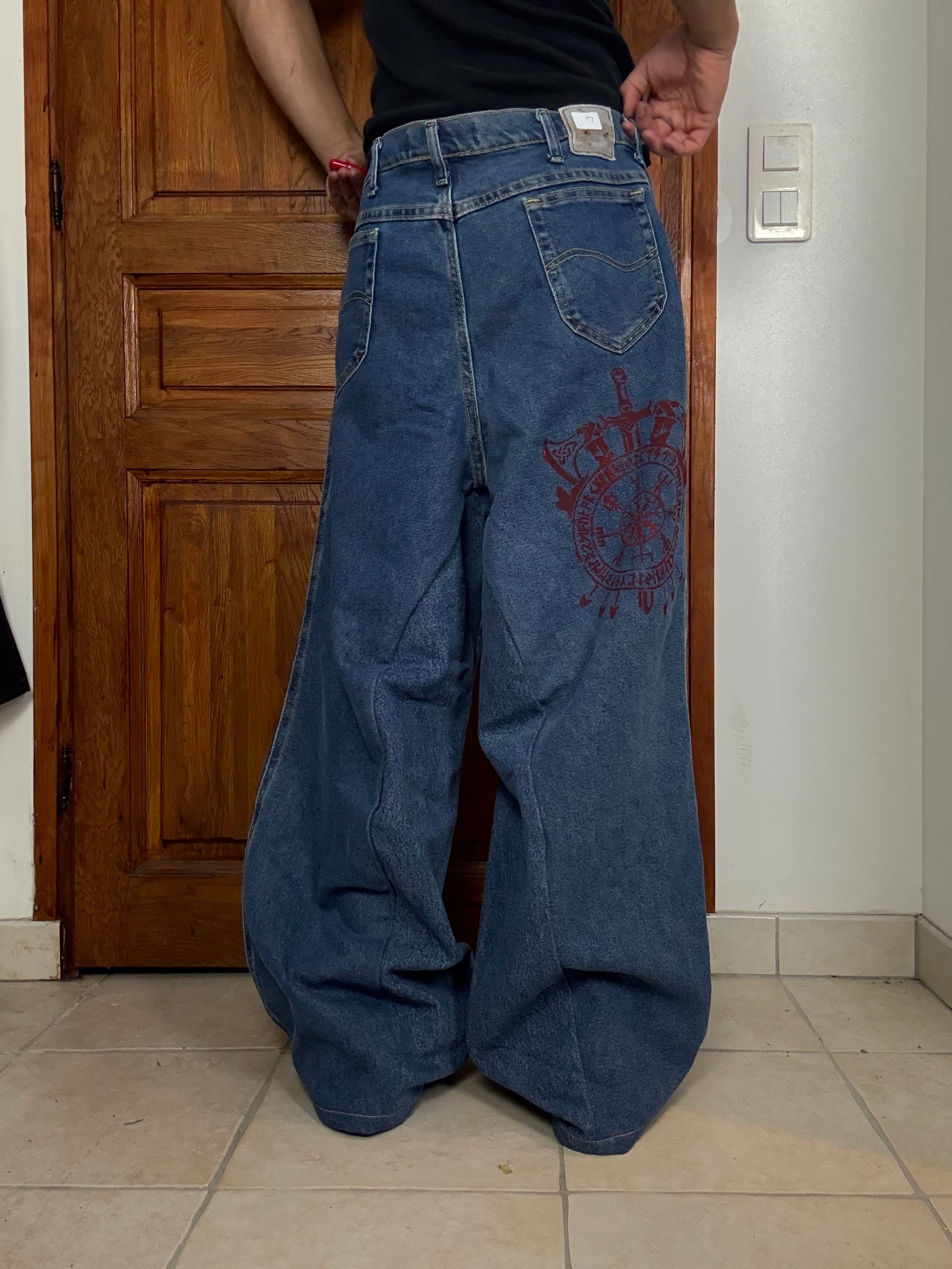 Pantalon baggy en denim upcyclé large style skater streetwear y2k hip-hop 90’s - Pièce unique XXL n•4