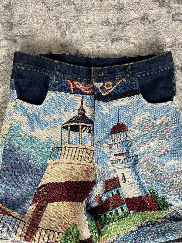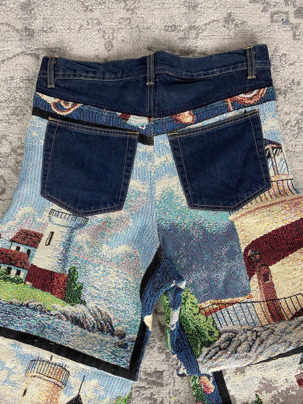 Pantalon baggy en tapisserie design unique vintage fait main upcyclé retravaillé taille 34US♻️