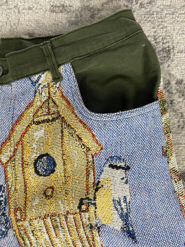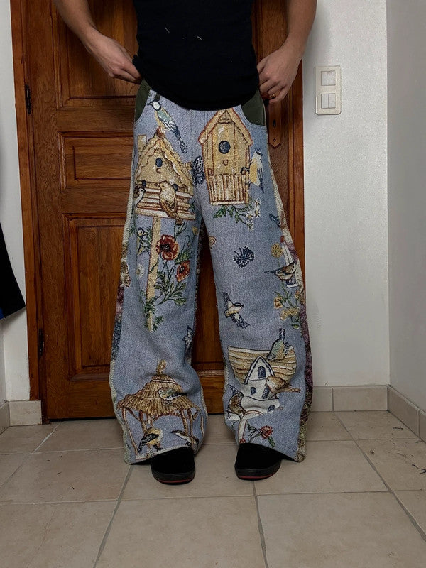 Pantalon tapisserie large streetwear artwear baggy ange nature fleur beau œuvre d’art wide leg