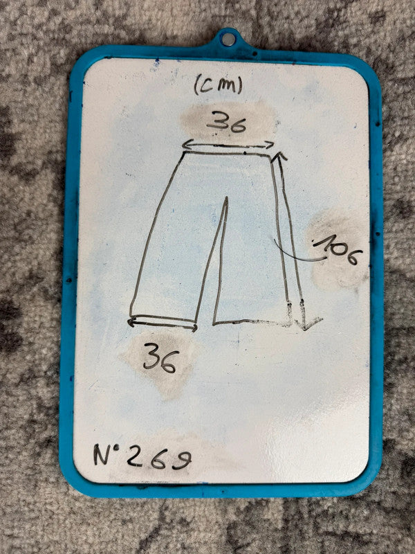 Chaque pantalon est entièrement retravaillé à la main, dans une logique de production responsable, sans surstock ni fabrication industrielle.