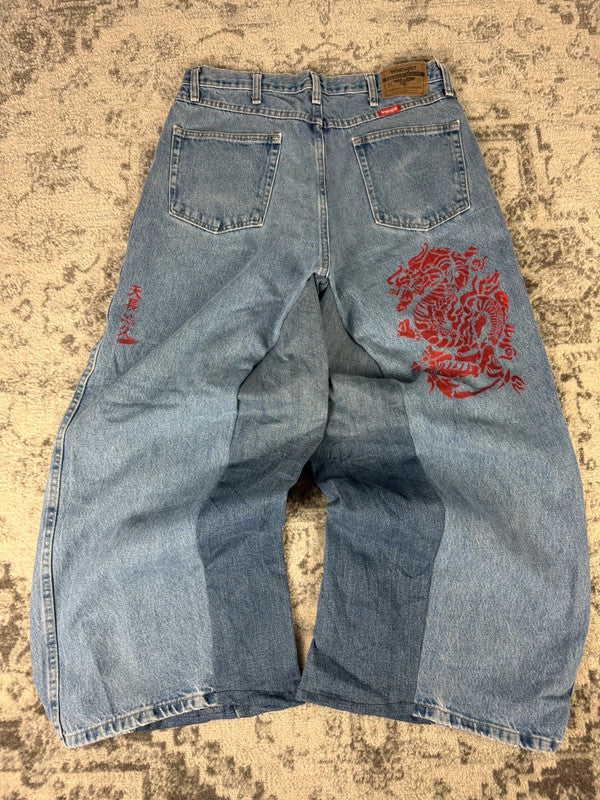 Baggy jeans Pant large handmade custommade customized skate brodé graphique y2k extra large hiphop hip-hop 90’s
