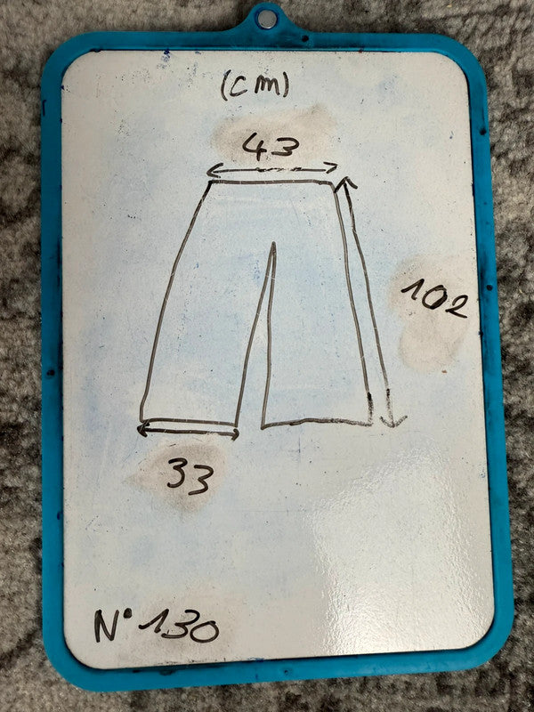 Chaque pantalon est entièrement retravaillé à la main, dans une logique de production responsable, sans surstock ni fabrication industrielle.