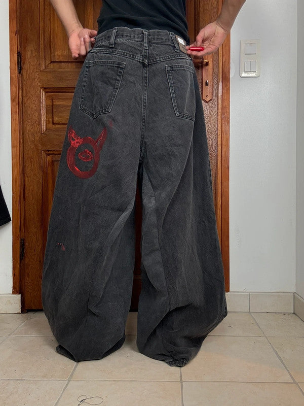 Baggy jeans Pant large handmade custommade customized skate brodé graphique y2k extra large hiphop hip-hop 90’s