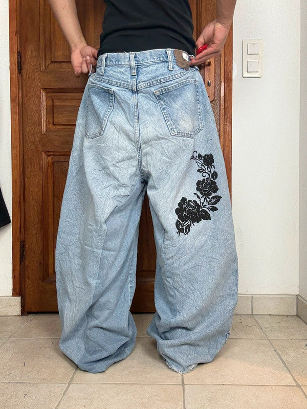 Baggy jeans Pant large handmade custommade customized skate brodé graphique y2k extra large hiphop hip-hop 90’s