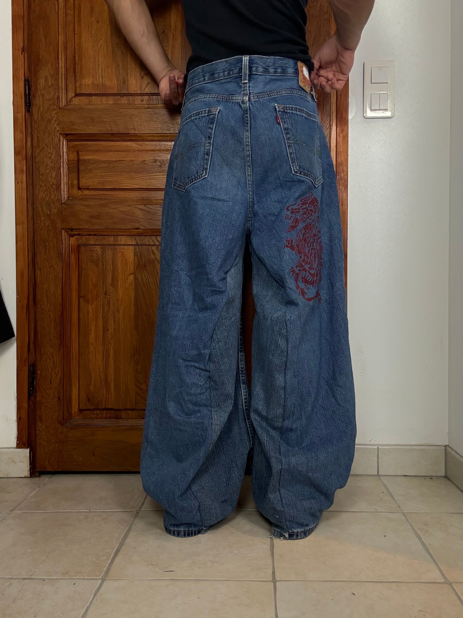 Pantalon baggy en denim upcyclé large style skater streetwear y2k hip-hop 90’s - Pièce unique XL n•1
